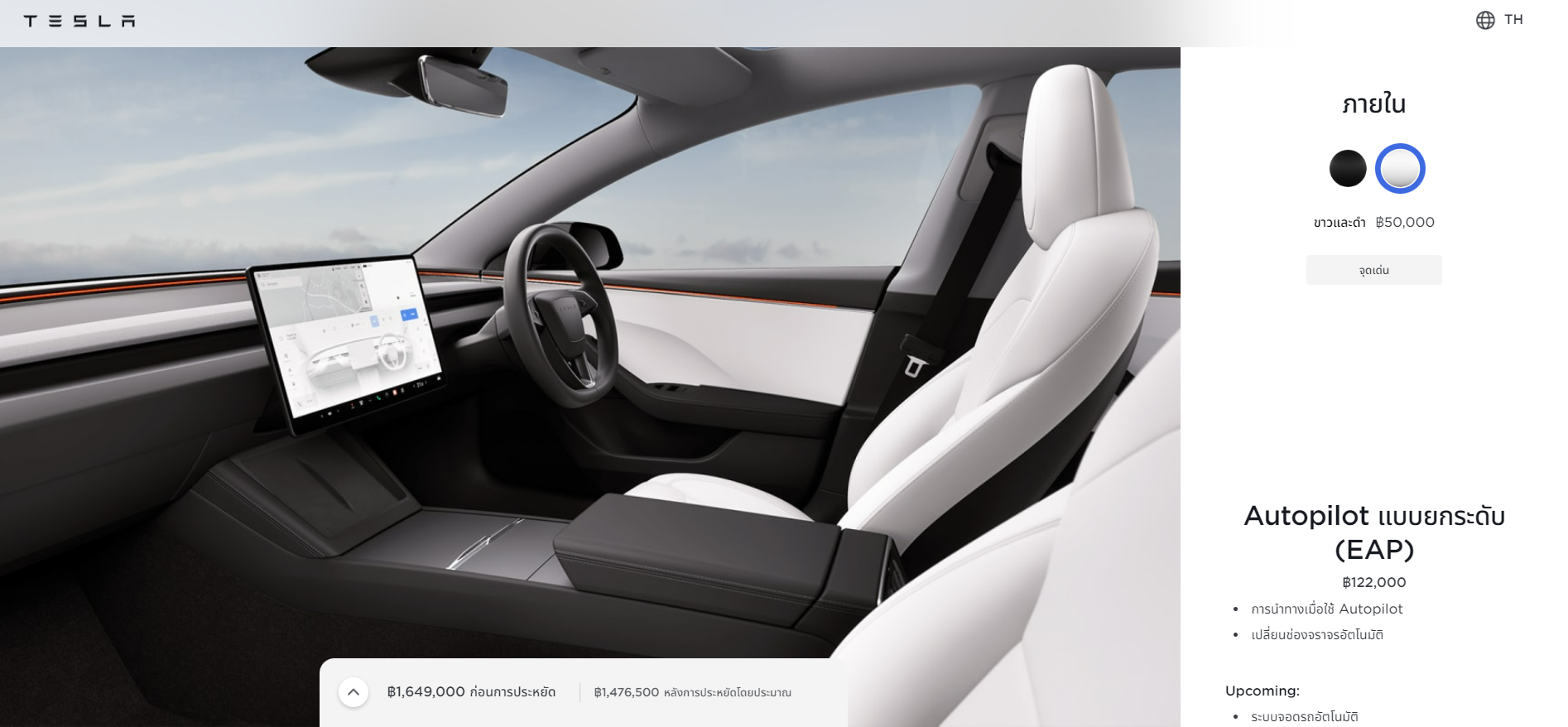 สำหรับราคาของ Tesla Model 3 HIGHLAND (Minorchange) ในไทย มีรายละเอียดดังนี้