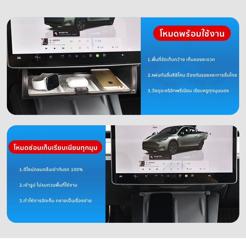 Box storage under screen & behind screen for Tesla Y(19-24 Years)/Model 3(19-23 Years)/3 Highland/New Model Y Juniper