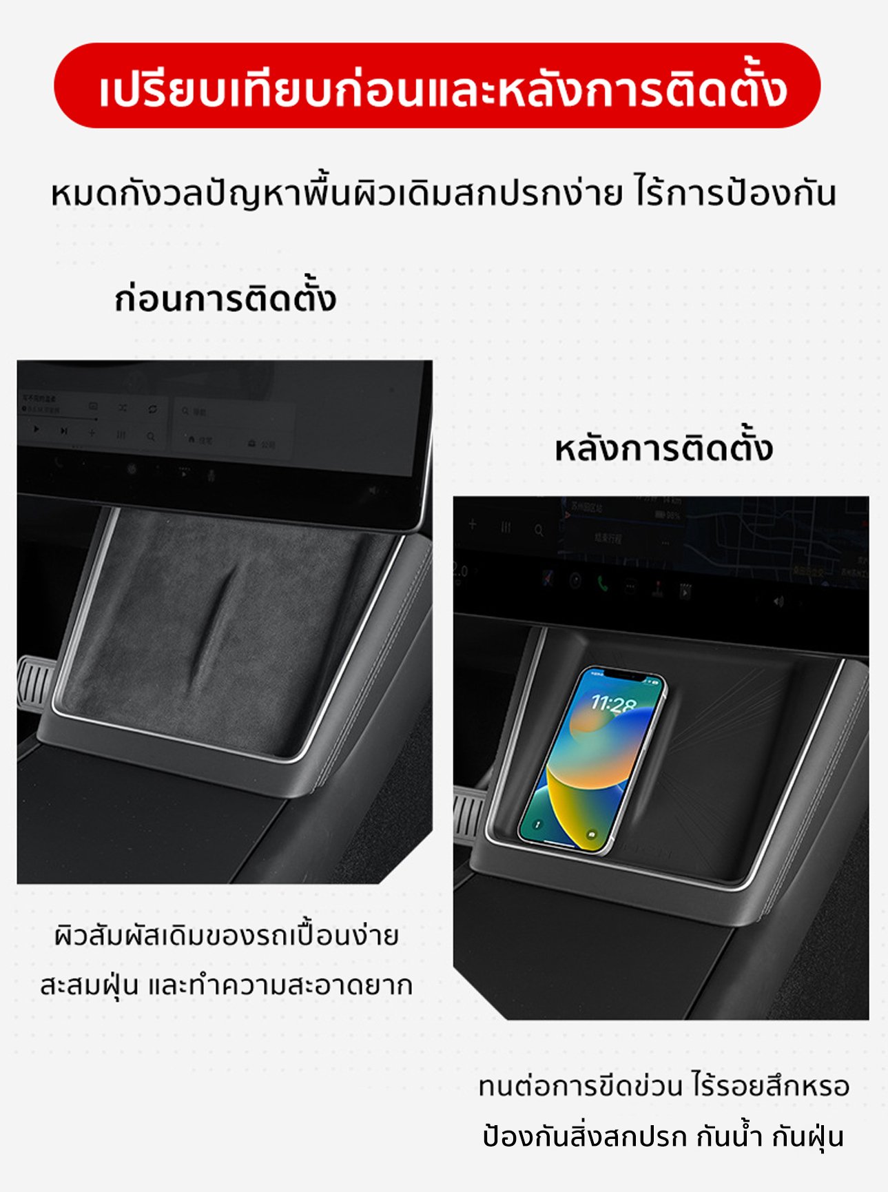 • ผลิตภัณฑ์พอดีกับตัวรถ และไม่มีผลกระทบต่อการใช้งานของแท่นชาร์จไร้สาย