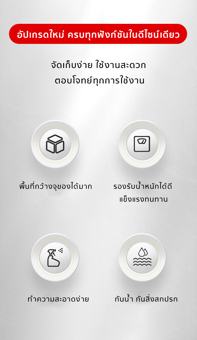 • กันน้ำ ทำความสะอาดได้ง่าย